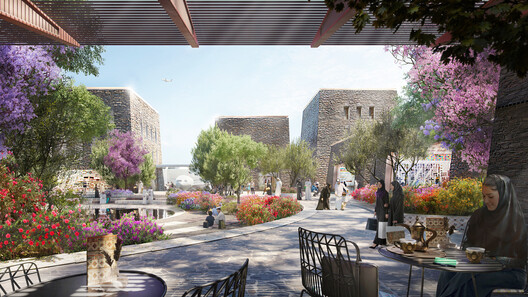 با توجه به اقلیم خاص منطقه، این طرح از بادهای غالب برای بهینه سازی تهویه طبیعی بهره می برد. از طریق روش های مختلف انبوه سازی، دیوارهای سنگی جامد و نور پراکنده روز به تنظیم حرارت فضاهای داخلی کمک می کند. علاوه بر این، نمای بیرونی که از سنگ نا هموار است، با پالت داخلی در تضاد است. تمام ساختمانهای مختلف که به حیاطهای محوطهسازیشده منتهی میشوند، توسط فروشگاههای خردهفروشی، سالن های غذاخوری، و کافهها احاطه شدهاند. این طراحی به مسافران اجازه می دهد تا مغازه ها را کشف کنند و از هوای آزاد لذت ببرند.