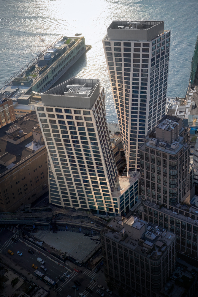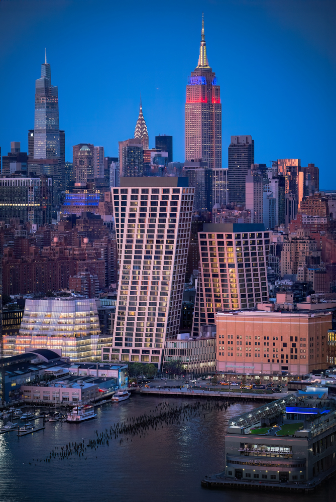 تصویر پروژه با شکل پیچشی آسمانخراشها، یک طراحی تحت تأثیرشرایط طرح، بهرهگیری از نماها یی که به سمت رودخانه هادسون هستند و جهتگیری خورشید، تعریف میشود. نماها که با شیشه و سنگ تراورتن پوشانده شده اند، به وضوح ویژگی های هندسی خود را بیان می کنند و در عین حال منظره های بهینه را برای هر ساکن فراهم می کنند. امکانات اضافی از جمله فضای مشترک در طبقه سوم، استودیوی تناسب اندام و استخر، فضای شبیه سازی شده گلف، و اتاق بازی برای ساکنان گنجانده شده است.