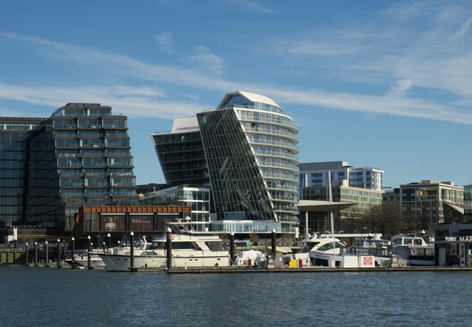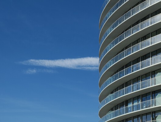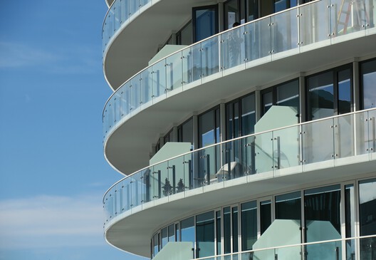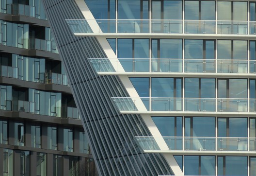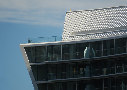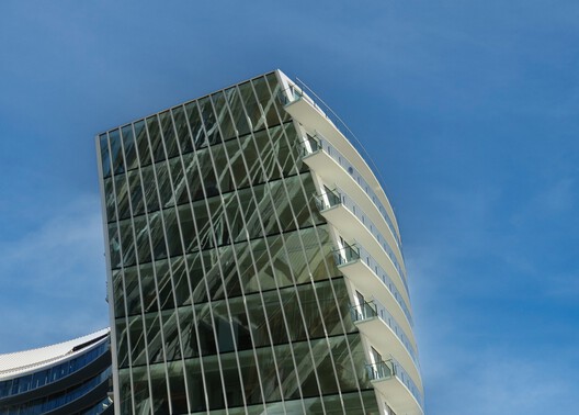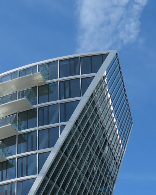 برج، نمایانگر متمایزترین ویژگی های ساختمان است. این سازه یازده طبقه که دارای حجم منحنی است، در ضلع شرقی سکو قرار گرفته و بیشتر واحدهای مسکونی را در خود جای داده است. شکل بنیانی پروژه، برای ایجاد یک رابطه با صحنه آرنا، یک موسسه فرهنگی مهم در منطقه، انتخاب شد. شکل مخروطی، از سرزندگی فعالیت هایی که در بندر اسکله انجام می شود الهام می گیرد. در عین حال، انحنای ساختمان برای باز کردن توده ساختمان به سمت پارک در نظر گرفته شده است.
