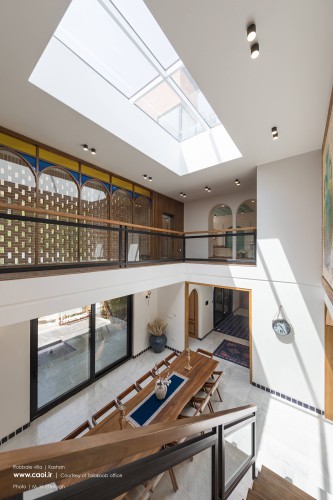 در کنار انواع فضاهای مختلف که الهام گرفته از معماری گذشته ایران است، سعی شده نگاه ویژه ای به فضاهای باز و نیمه باز و نحوه تاثیر آن در کیفیت بخشی به سایر فضاهای مجاور شود، اهمیت این موضوع به اندازه ای است که میتوان گفت سازماندهی فضاها بر اساس فضای میان تهی انجام شده است و فضاهای مختلف به گونه ای تحت تاثیر آن هستند (با ایده گرفتن از حیاط مرکزی در معماری قدیم ایران)، ضمن آنکه شفافیت و سیالیت علاوه بر روابط افقی فضاها به روابط عمودی فضاها نیز امتداد پیدا کرده و تا حد امکان مرز میان فضاها را دستخوش تغییر کرده است ، در کنار این سعی شده بازشوها به گونه ای در جداره های بیرونی بنا قرار بگیرند که حداکثر استفاده از نور طبیعی با توجه به موقعیت جغرافیایی و همچنین حداکثر استفاده از منابع طبیعی با توجه به قابلیت های سایت حاصل شود.