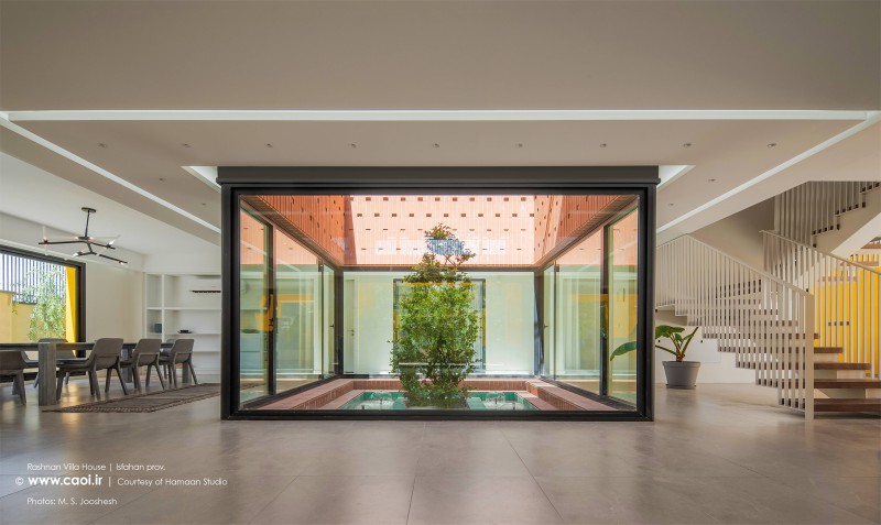 ویلاخانۀ راشنان وقتی به ما رسید ساختمانی در مرحله سفتکاری بود در یک زمین باغی در روستایی نزدیک به شهر. اسکلت ساختمان خبر از ساختهشدن یک ویلای تیپ میداد که نظیرش زیاد است. اسکلتی با طرح پلانی تقریباً نهبخشی که گویی بازترجمهای است پیشپاافتاده از معماری گذشتۀ کوشکهای ایران، بدون مفصلبندی و جزئیات فضایی، با تزئیناتی همچون سنتوری و تاج پیشانی. در چنین شرایطی بعد از برپایی سفتکاری بنا، کارفرمای پروژه به این نتیجه رسیده بود که بیش از این میخواهد: ویلایی که فقط ویلای فراغت تعطیلات نیست، بلکه میتواند نقش خانه را هم ایفا کند و خودش مستقل باشد، نه بدیل کوتاهمدتی برای یک خانۀ شهری. همچنین برخی از خاطرات گذشتۀ او از فضاهایی که پیشتر تجربه کرده است در آن قرار بود محقق شوند و کلیشۀ پیشین از پس آن برنمیآمد. این پروژه به همین دلیل تجربۀ شیوایی بود از خودآفرینی معمارانهای که با خواستههای کارفرما در رابطهای گفتگویی است.