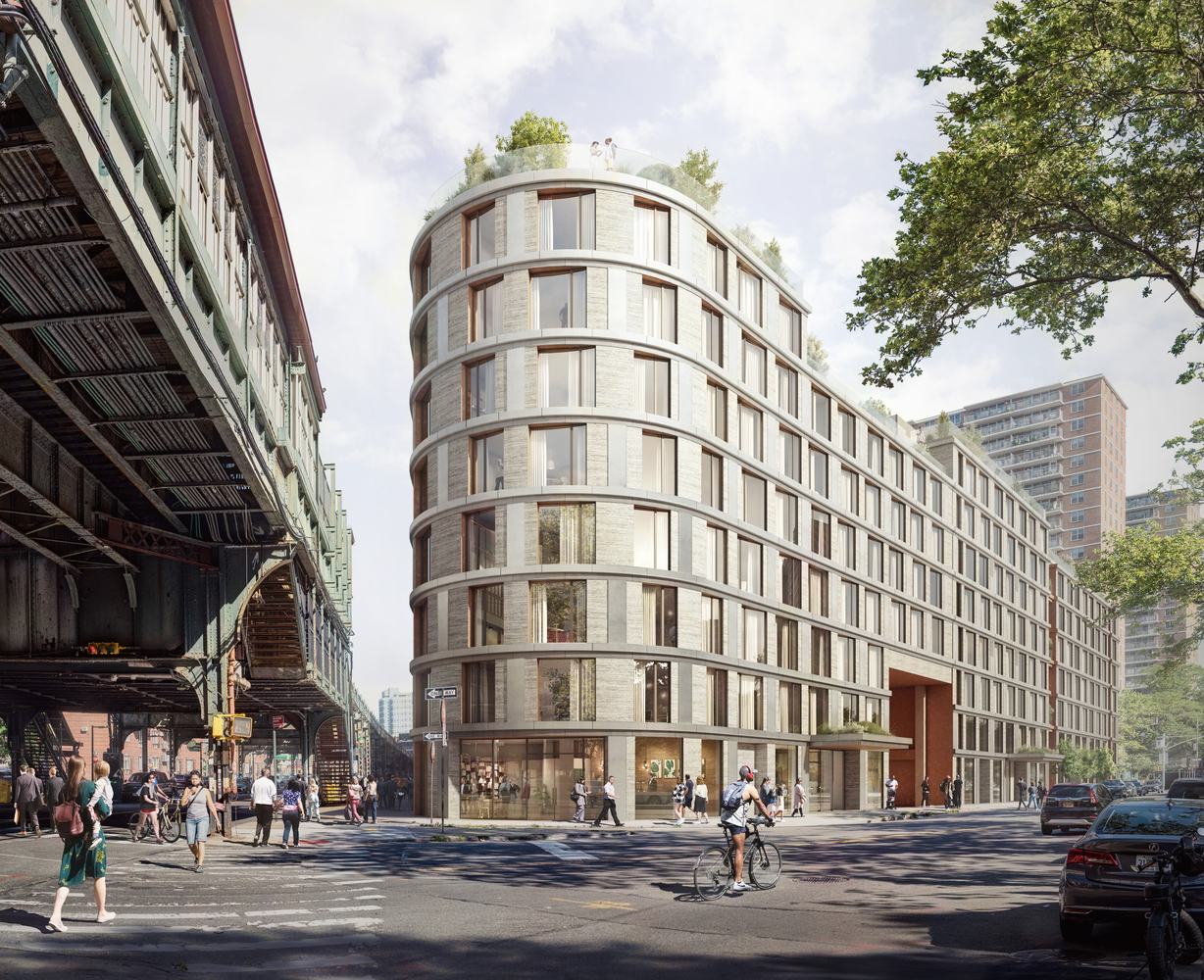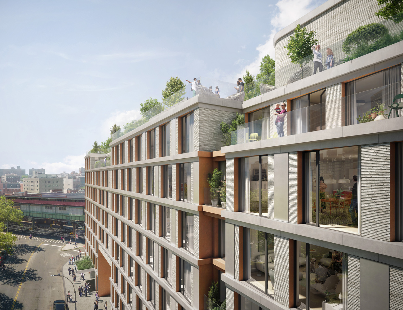 شرکت معماری ODA طراحی یک توسعه مسکونی بافتمند را در بروکلین، نیویورک نشان می دهد