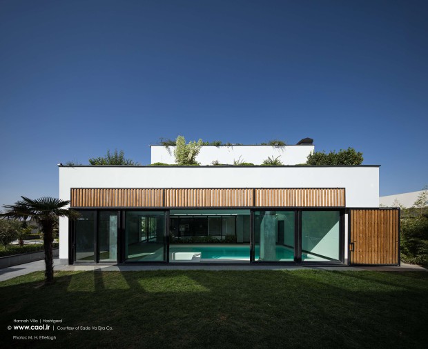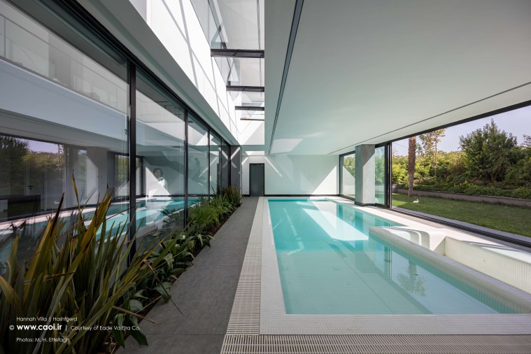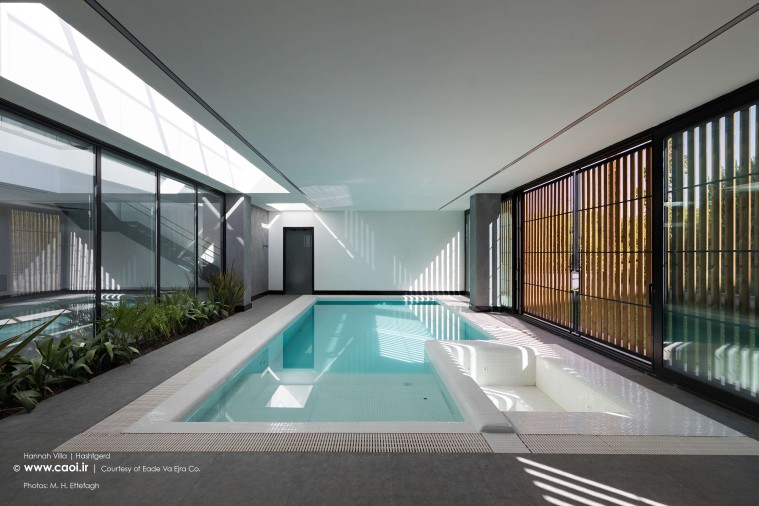 با تعبیه بازشوهایی در مجاورت استخر امکان بهرهمندي از آن در فصول مختلف فراهم شده و همچنین بواسطه رعایت شرایط اقلیم منطقه و به تبع آن ایجاد فضاي آسایش لوورهاي متحرك بر روي بازشوهاي شیشهاي در نظر گرفته شده است تا ضمن امکان کنترل میزان ورود نور، محرمیت در مواقع لزوم حفظ گردد. این لوورها در سایر بازشوهاي پروژه نیز لحاظ گردیده است.