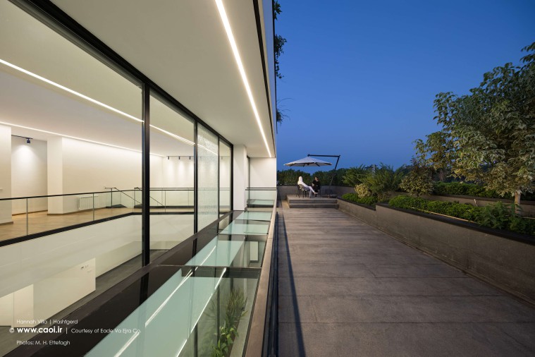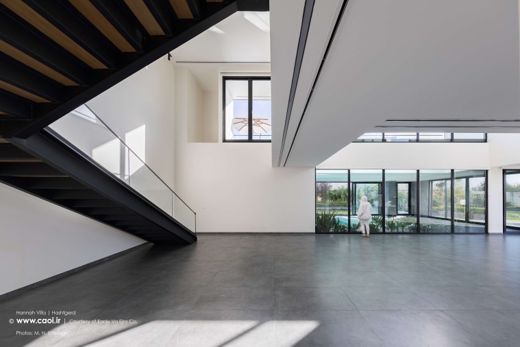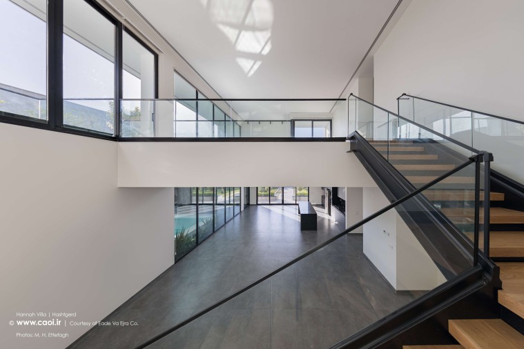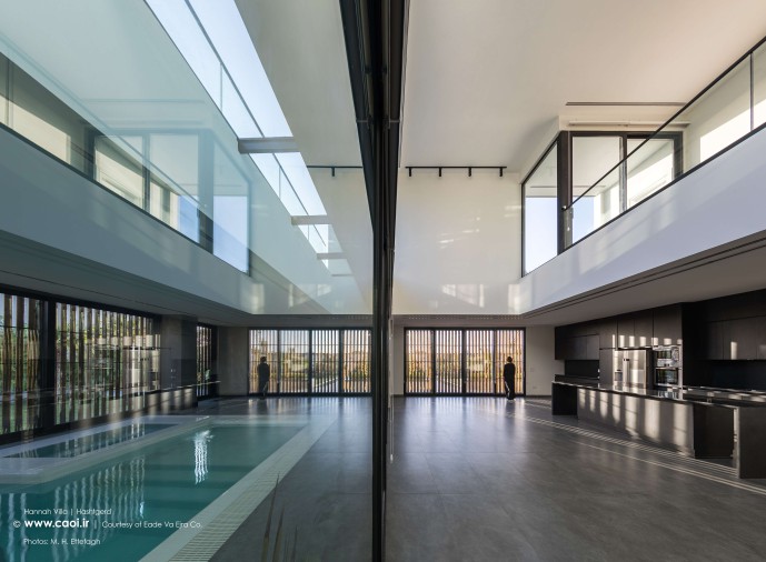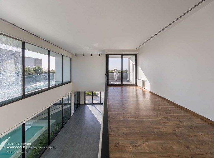 تعبیه وید در مرز درونی ویلا موجب سبکی فضا و گسترش دید ساکنان طبقه بالا به استخر میگردد و از سوي دیگر تلاقی وید با مرز جداکننده بیرون و درون، به نوعی، به شکلگیري دیدهاي درونی و بیرونی منجر شده که بخشهایی از این دیدها در تراز سقف استخر میباشد و امکان بهرهمندي از نور طبیعی و ایجاد دیدهاي متنوع را فراهم میسازد.
