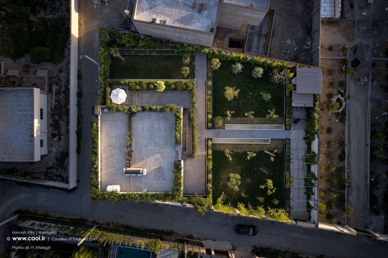 پس از مذاکره با کارفرما و توضیح وضعیت تراکم بافت و همچنین در نظر داشتن اینکه بناهاي زیادي در محدوده پروژه در حال ساخت و یا در برنامه ساخت قرار دارند، مقرر شد که دو ویلا در یکدیگر تجمیع شوند و بخش وسیعتري به فضاي باز و به تبع آن فضاي سبز اختصاص یابد تا ضمن ایجاد نوعی گشودگی در بافت، استفاده از فضاي سبز در مجاورت فضاي سکونت به مولفهاي در راستاي ارتقاي کیفیت زندگی منجر گردد.