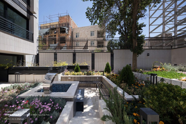 لذا با توجه به محدودیت ضوابط شهرسازی، استخر و سالن وررشی با پیشبینی گودالباغچه برای تأمین نور و تهویه در زیرزمین دوم، و پارکینگ در زیرزمین اول طراحی شد. سالن اجتماعات و پارکینگ مازاد نیز در همکف به گونهای طراحی شد که در مواقع مورد نیاز امکان افزایش فضای سالن از طریق الحاق فضای پارکینگ مازاد به عنوان فضای مکمل باشد و در عین حال بتواند از امکانات فضای باز حیاط نیز برخوردار شود. بنابراین به طراحی فضای سبز و محوطهسازی حیاط نیز توجه ویژهای شد.