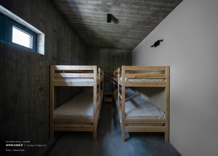 با جدا کردن اجزا برنامه؛ در این اقامتگاه ، مردم اجازه می یابند شیوه دیگری از زندگی جمعی را تجربه کنند که آنها را قادر می سازد با طبیعتی که در شهر طرد شده است. بیشتر مواجه شوند. از این رو سه غار مجزا به مساحت ۷۰ مترمربع در اطراف حفره ای در مرکز زمین حفر شده که نیازهای این کمپ اقامتی را تامین می کند. غار اول شامل اتاق خواب ها، غار دوم برای زندگی و غار سوم حوض آب و تاسیسات است.