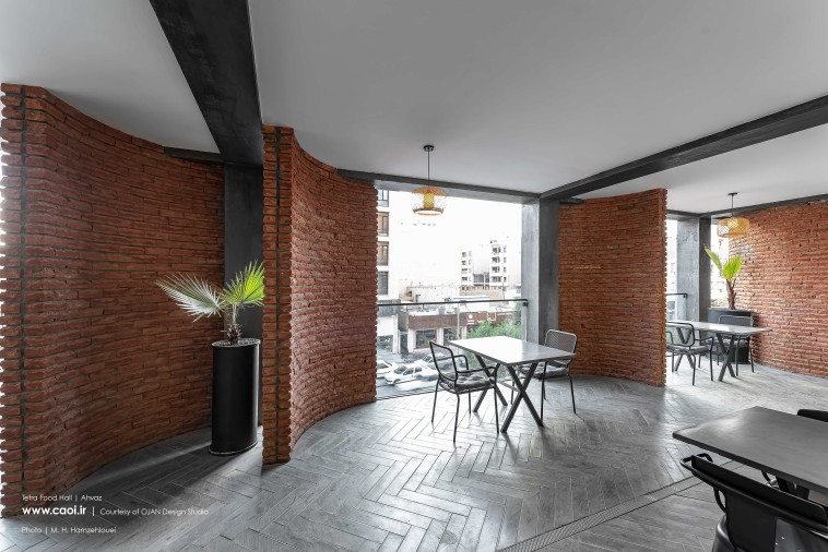 به سبب مواجهه مخاطبان پروژه با این پوسته، تلاش شد تا مدول های آجری نیز ماهیتی منحصر به فرد برای ترغیب حس لامسه و بازی با نور و سایه داشته باشند. لذا، با تیشه ای کردن آن ها توسط نیروی دستی کارگرها، تلاش کردیم تا هر یک به جای داشتن بافت منظم کارخانه ای، همچون اثری هنری حاصل تلاش کار دست بوده و هیچ آجری شبیه دیگری نباشد. این تصمیم باعث افزودن لایه ادراکی جدیدی به پروژه شد که فقط در رزولوشن بالا و فاصله نزدیک قابل رویت است. پروژه تترا فودهال نمایشی از قوس های آجری رقصانی است که هر یک در تلاش برای امتداد شهر به درون هستند و پترنی هم آوا با موسیقی شهر را به گوش می رسانند.