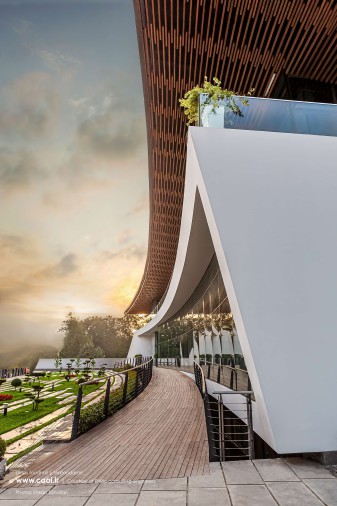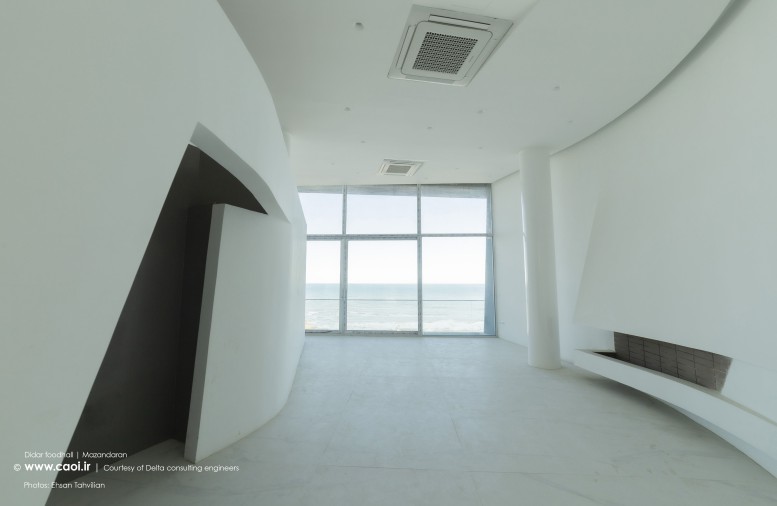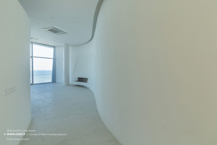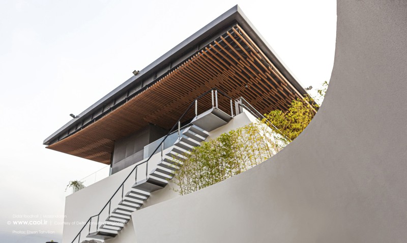 دیاگرامِ اصلیِ طرح، ما را به قابِ سادهای رساند که سعی شد در اجرا تا حدِ ممکن ظرافت و کمترین جرم را داشته باشد. پس از تثبیتِ این دیاگرام، پارامترهای محیطی ناشی از همجواری با دریا و محورِ حرکتیِ جنوبی با درنظرگرفتن نیازهای فضاییِ پروژه در شکلگیری معماریِ آن مؤثر واقع شدند و بر حال و هوای فرم و فضا افزودند. ایجاد تعلیقِ حجم دررابطهبا بِستر با فاصلهگرفتن از زمین و همچنین ایوانهای پیرامونی فضاها در طبقهی اول، الگوهای مرتبط با معماری منطقه هستند که در ناخودآگاه ما بوده است. همچنین، قابِ سادهی پوشیده از رنگِ سفید و سقفِ چوبیِ بر فراز آن با برقراری ارتباط با مصالح بوم منطقه، در ایجاد احساسِ تعلق بنا به خِطهی شُمالِ کشور نقش ایفا میکنند.