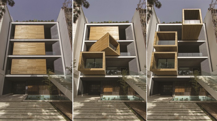 به گفته آرشیتکت پروژه، " تخصص ما ناگزیر منجر به تبدیل یک نمای دو بعدی به نمای سه بعدی شد. در اینجا بازو بسته شدن حجم ساختمان به خانه های سنتی ایرانی اشاره می کند که با ایجاد فضای زمستان نشین و تابستان نشین به صورت کاملا پویا به عنوان یک فضای زندگی فصلی برای ساکنان به کار بسته شده است."