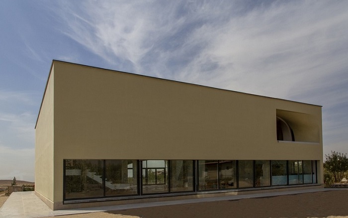 این خانه با 104 متر مربع مساحت در یک محوطه وسیع که دارای چشم انداز زیبای کوههای ابرز می باشد، قرار گرفته است. با توجه به محدودیت های ساختاری، استراتژی طراحی، دنبال کننده مسیری بود که از طریق آن اسکلت اولیه می توانست به یک حجم خالص مکعبی که آن را در محدوده خود متمایز می کند تبدیل شود. کشش نما به سمت فضاهای باز و ستون ها نه تنها به نیازهای ساختاری پاسخ داده است بلکه به نماهای داخلی و خارجی کیفیت های فضایی نیز بخشیده است.
